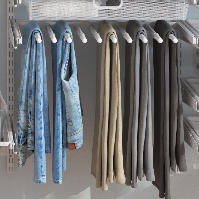 Выдвижная вешалка для брюк, обеспечивает хороший обзор и доступность, а силиконовые противоскользящие кольца удерживают брюки на месте.- труба D16 mm на 6 брюк