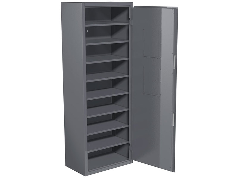 - Оборудован 8-мью съемными полками. Конструкция полок обеспечивает гарантированно надежное и устойчивое положение за счет фиксации полок в выбранном положении. Нагрузка на полку 100 кг